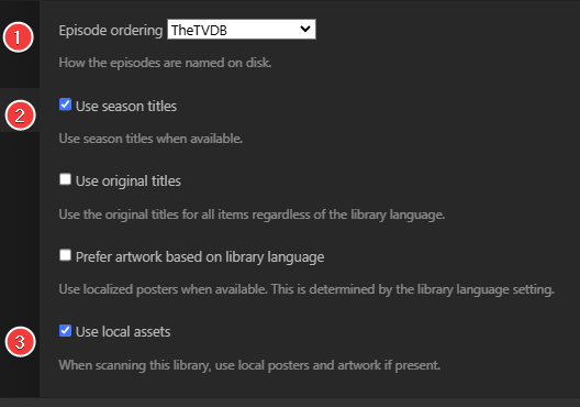 We will only cover the library settings for Movies and TV shows